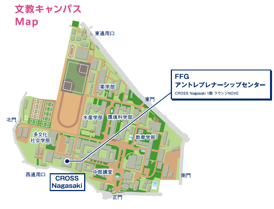 長崎空港(大村市)から浦上経由長崎方面行き長崎県バス「長崎空港リムジン」で「長大東門前(ちょうだいひがしもんまえ)で下車(所要時間/約50分)し、徒歩で約3分